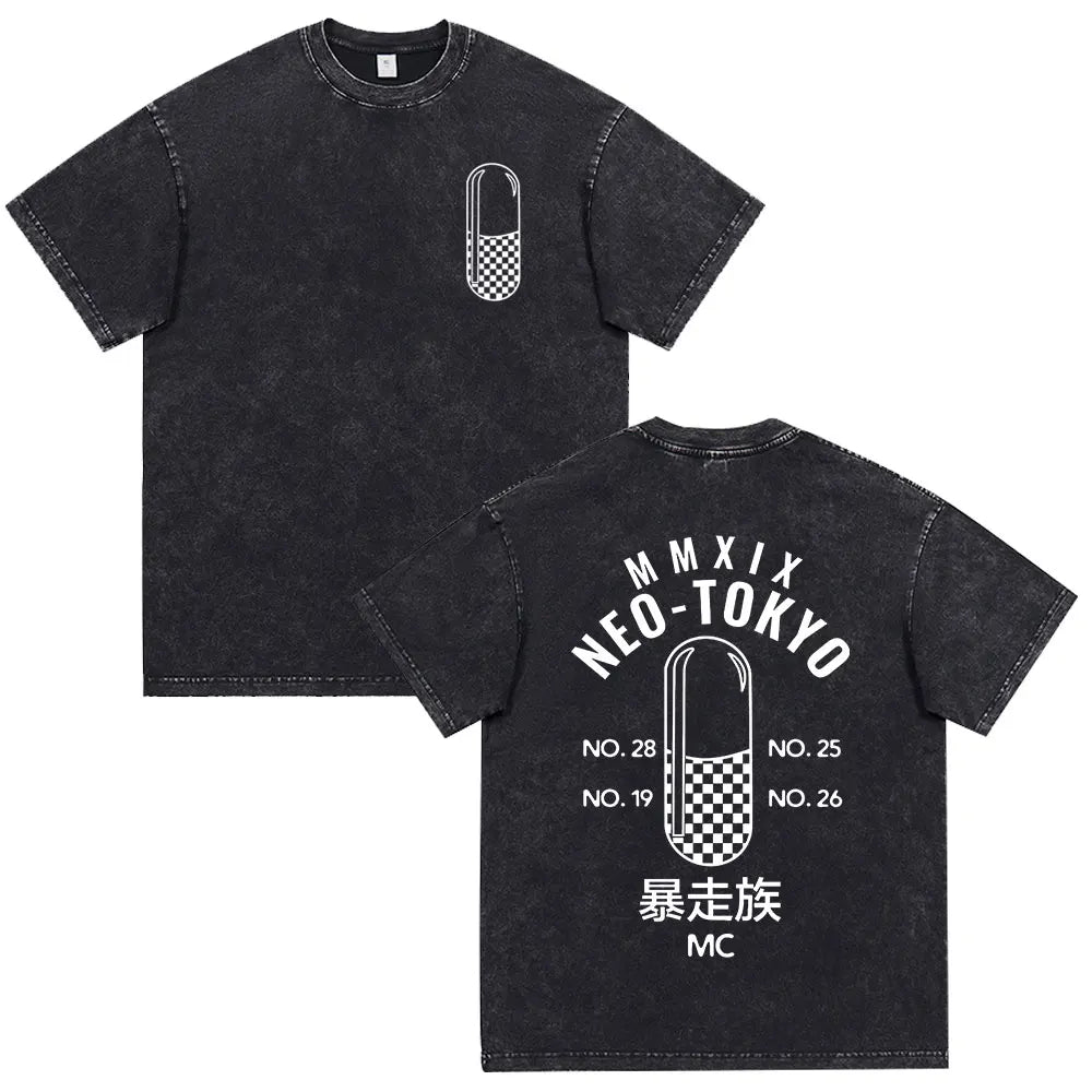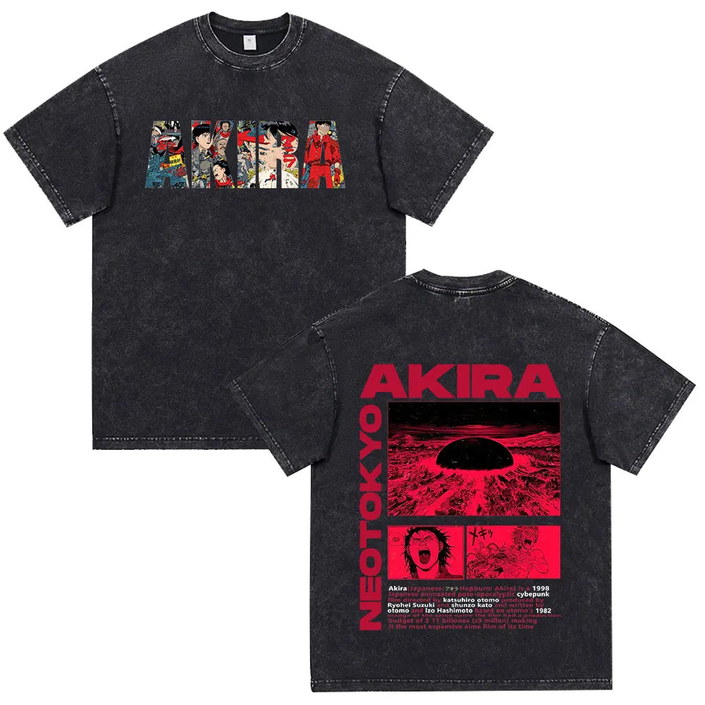 Akira: Washed Vintage T Shirt Science Fiction Cartoon Movie Shotaro Kaneda T-shirt Cotton Casual T-shirt