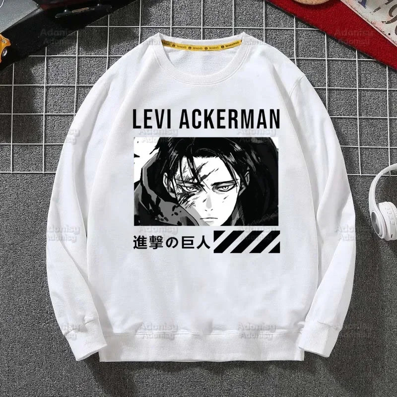 Anime Attack On Titan: Hoodies Autumn Hooded Sweatshirt Levi Ackerman Eye Men Hip Hop Hoodie Classic Hoody Pullover Tops white