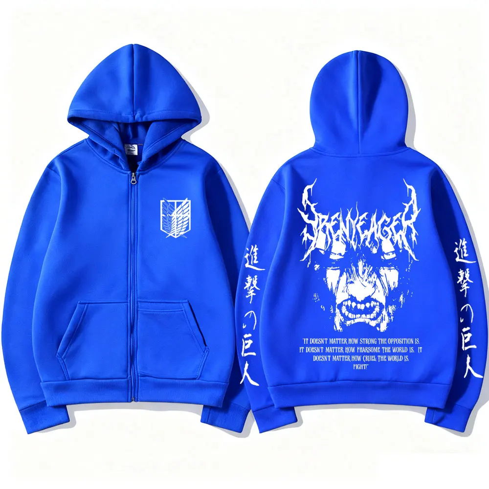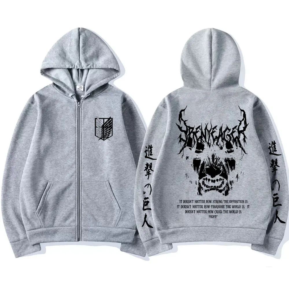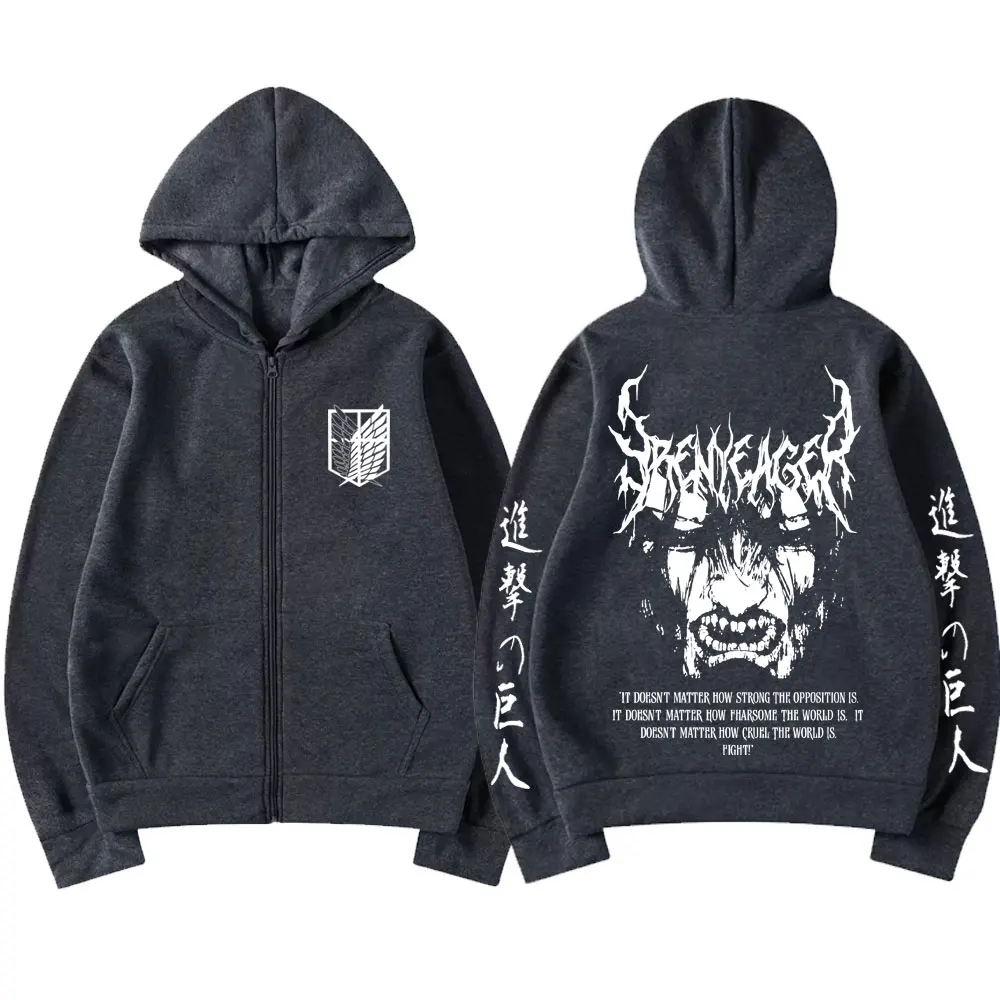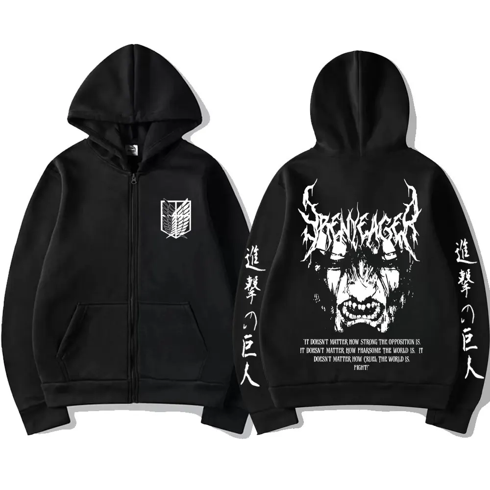 Attack on Titan: Eren Jaeger Merch Zipper Hoodie Men Women Casual Oversized Zip Up Jacket Cartoon Manga Cosplay Streetwear