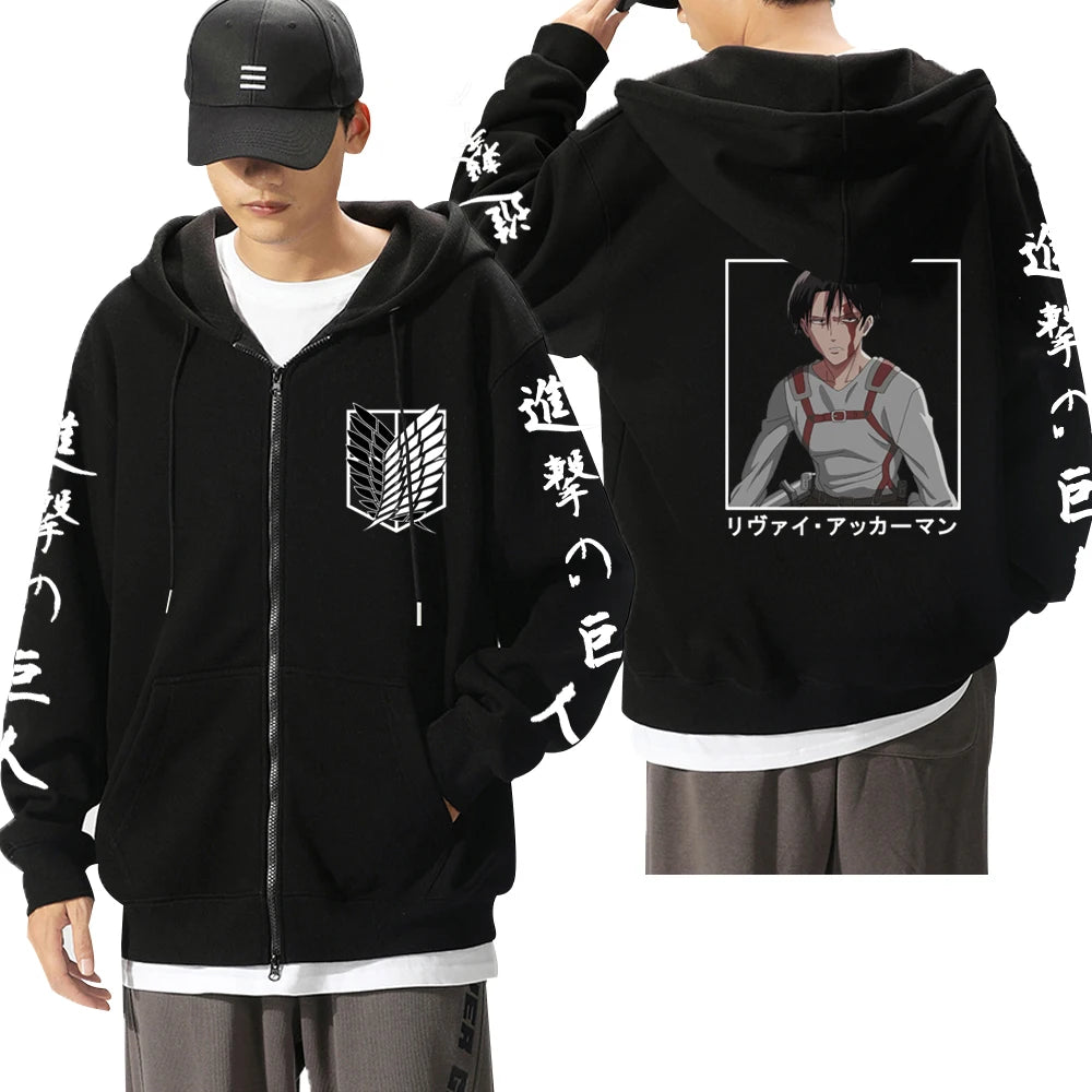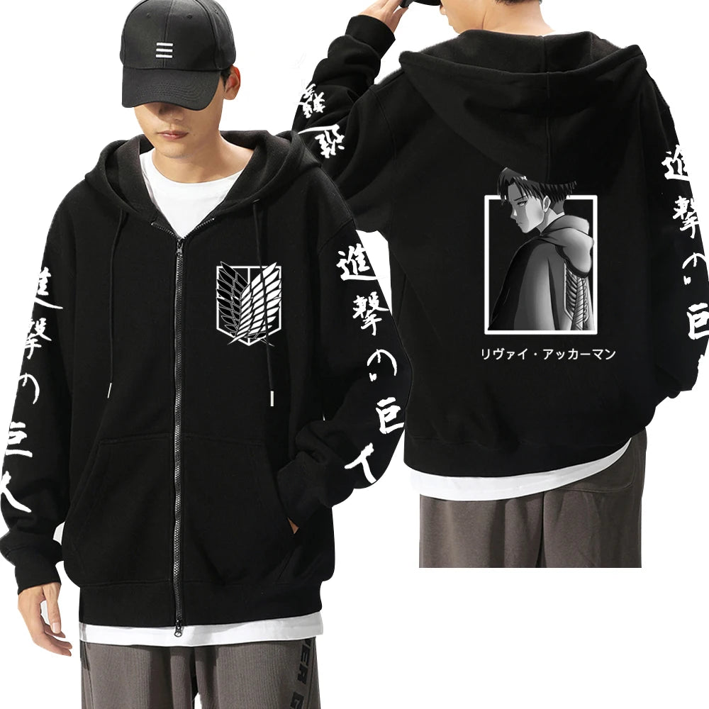 Attack On Titan: Levi Graphic Printed Hooded Plus Size Sweatshirt Harajuku Unisex Zipper Jacket