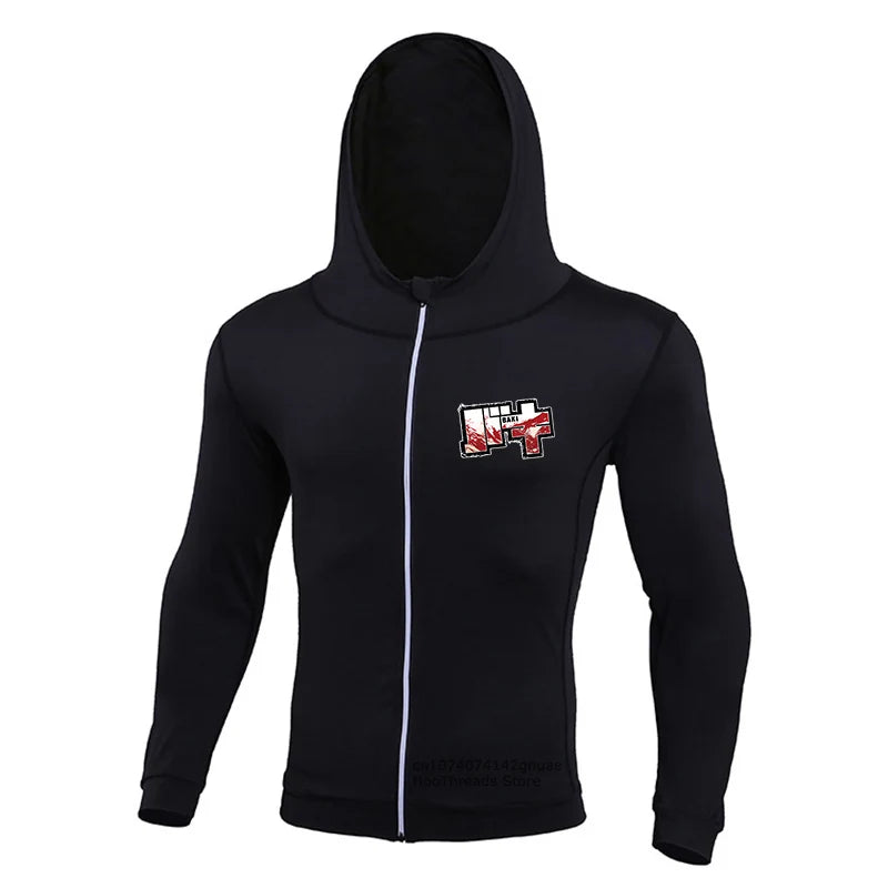 Baki: Print Fitness Running Jackets for Men Sports Athletic Hooded Coats Quick Dry Stretch Outwear Long Sleeve Zip Up Tops