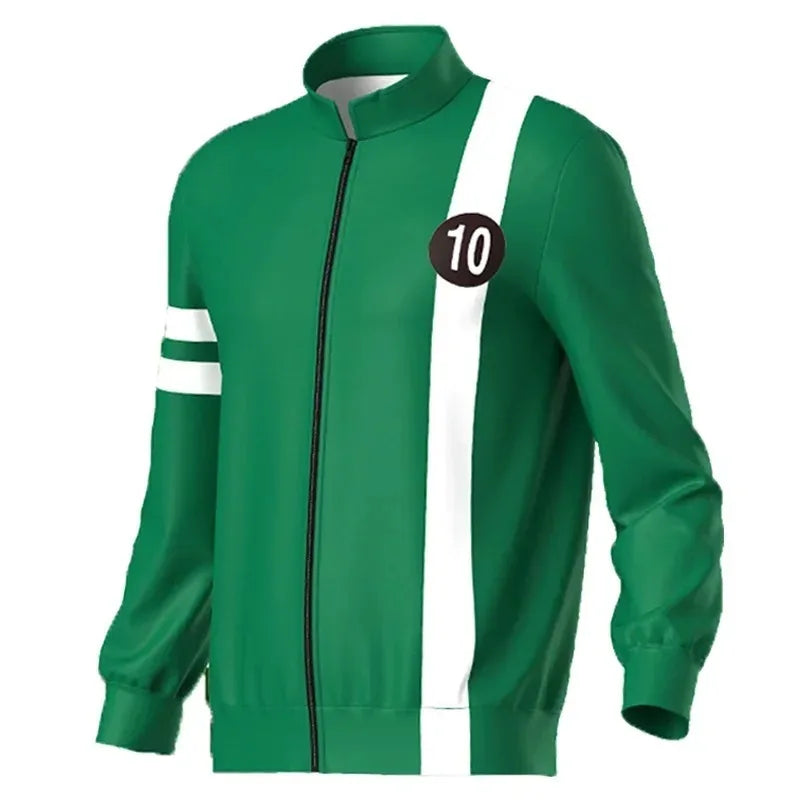 Ben10: Alien Force- Ben Tennyson Cosplay Unisex Sweatshirt Jacket Hoodies Zipper Coat Casual Uniforms Halloween Outfits