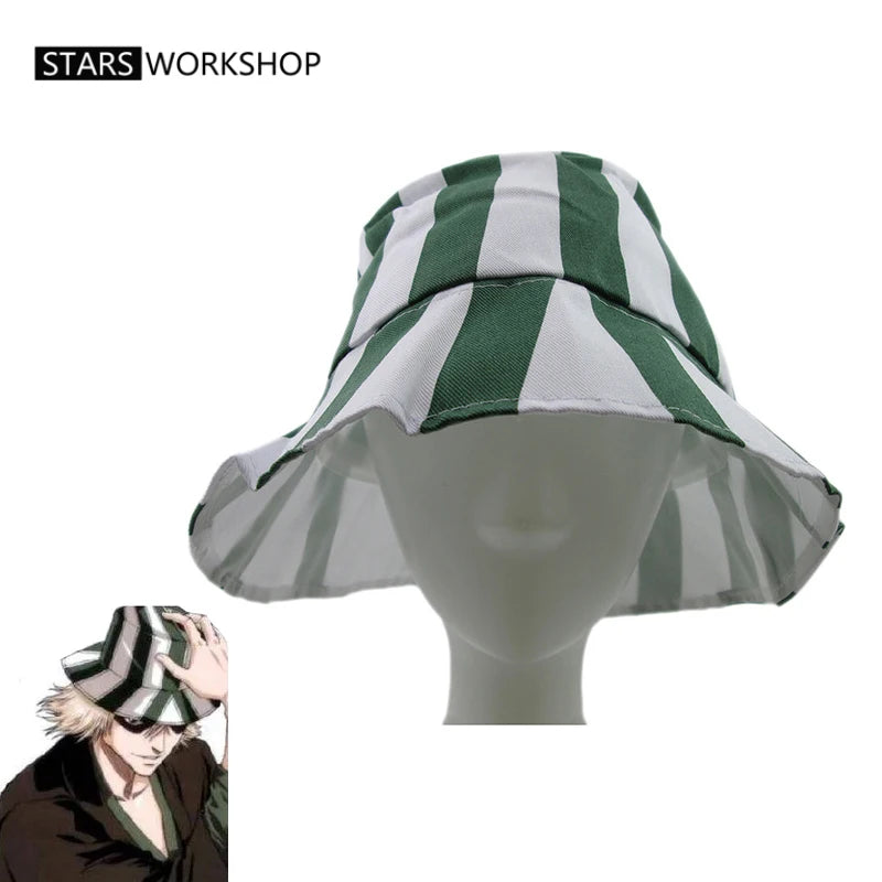 Anime Bleach Urahara Kisuke Cosplay Hat Green and White Stripe Cap Summer Cool Fisherman Hat