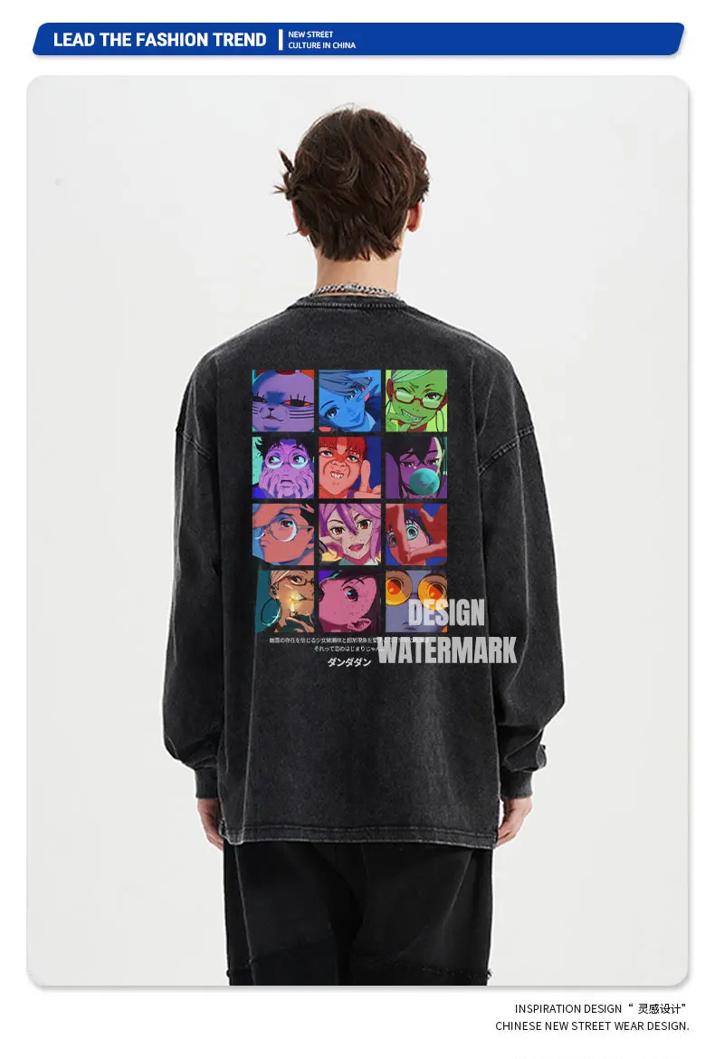 Dandadan: Sweater Vintage Washed Long Sleeve T Shirts Oversized Ayase Momo Sweatshirts