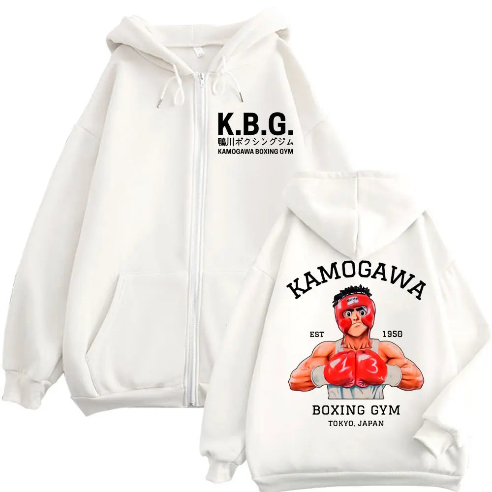 Hajime No Ippo: Kamogawa Boxing Gym Zipper Hoodie Harajuku Manga Zip Up Sweatshirt Men Women Casual Fashion Loose Pullovers