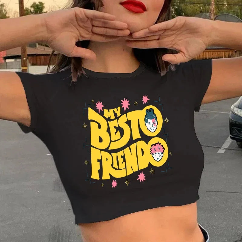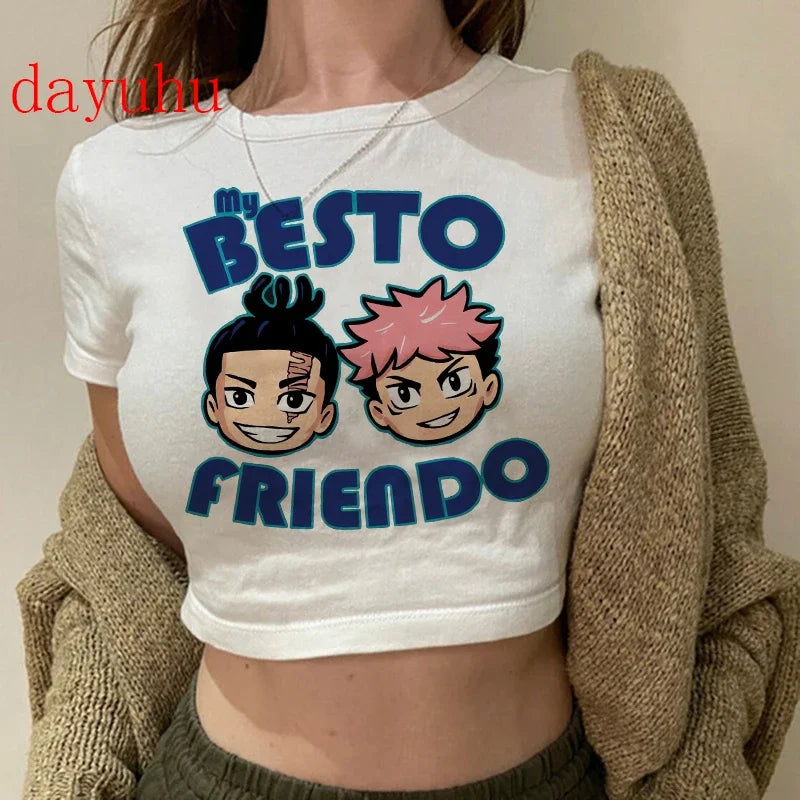 Jujutsu Kaisen: T Shirt Gojo Satoru Tops Yuji Itadori Cropped Tees T-shirt