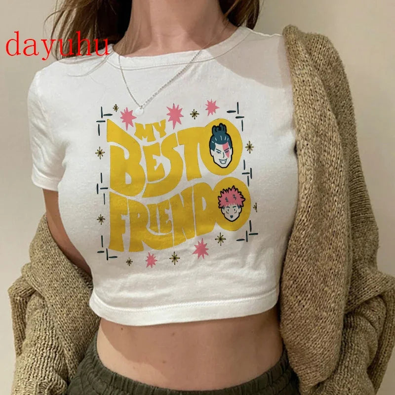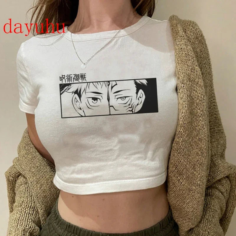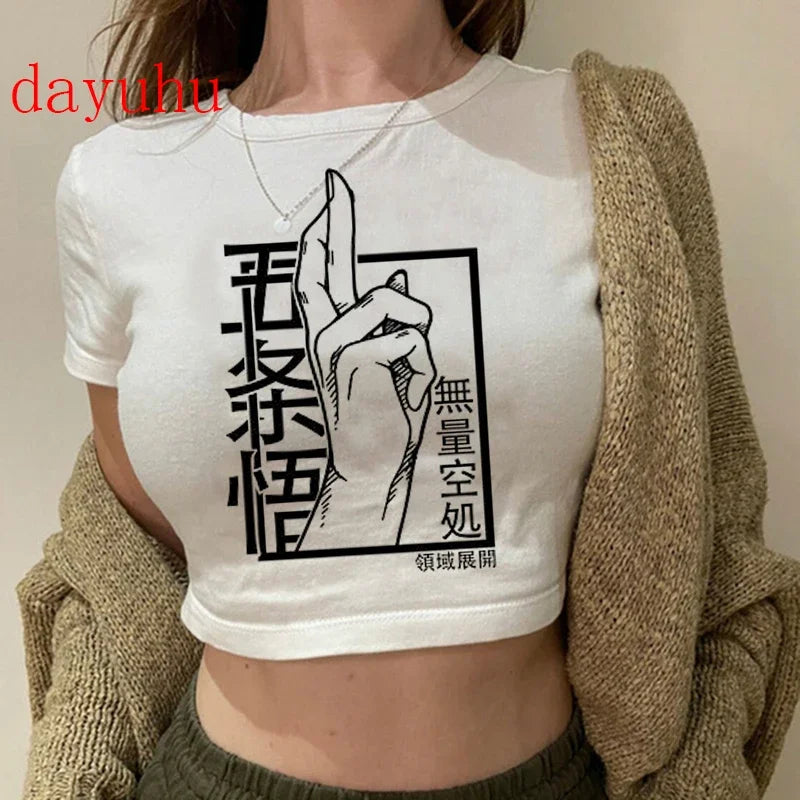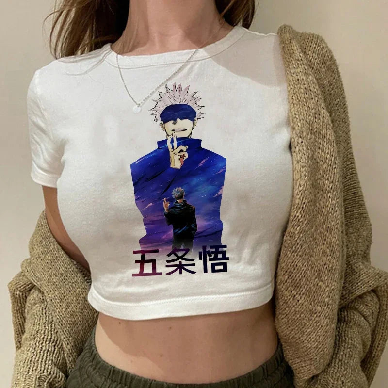 Jujutsu Kaisen: T Shirt Gojo Satoru Tops Yuji Itadori Cropped Tees T-shirt