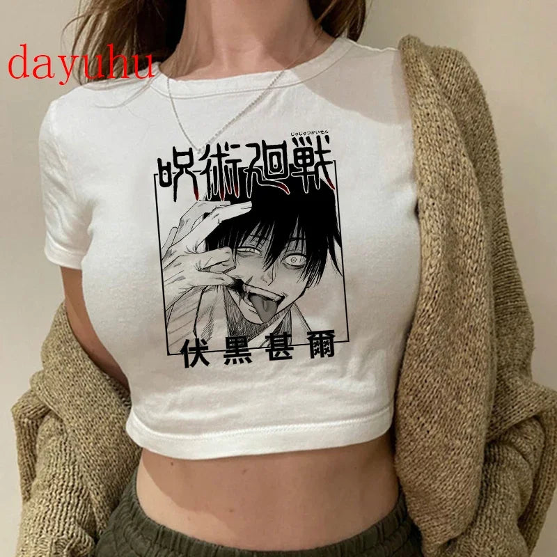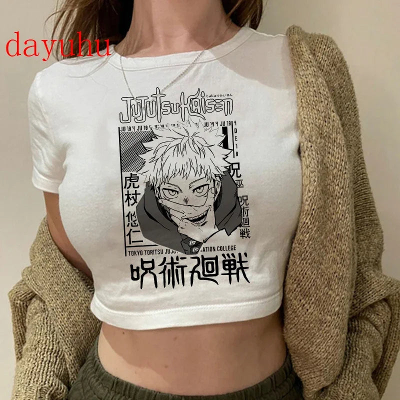 Jujutsu Kaisen: T Shirt Gojo Satoru Tops Yuji Itadori Cropped Tees T-shirt