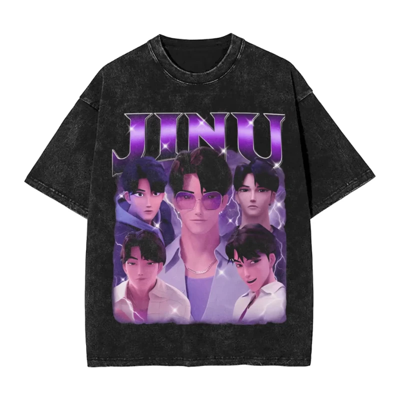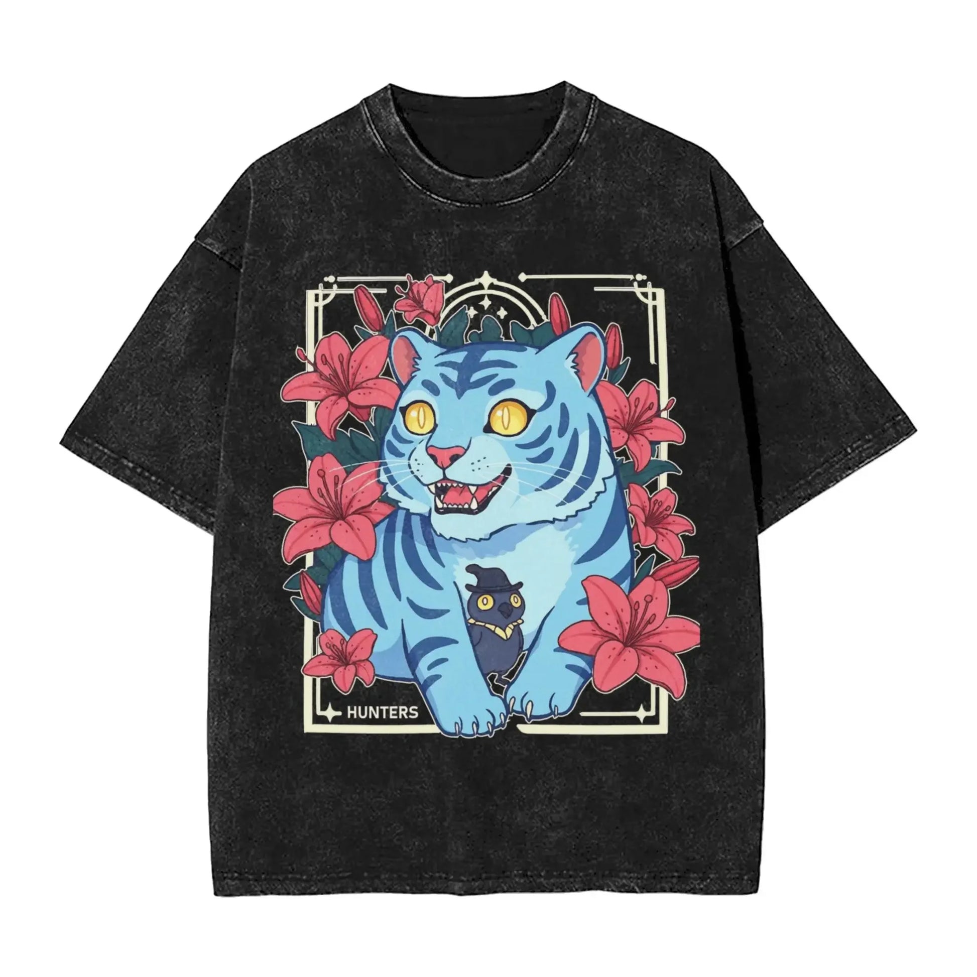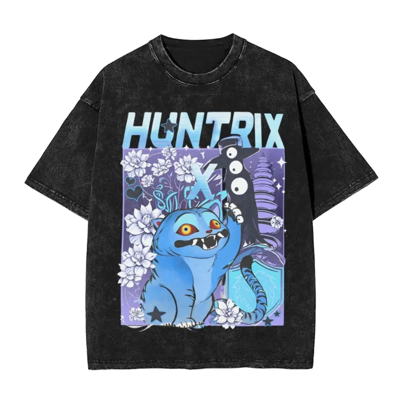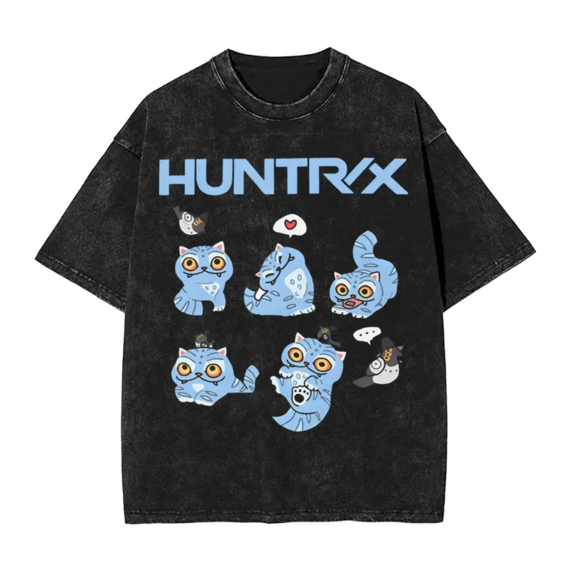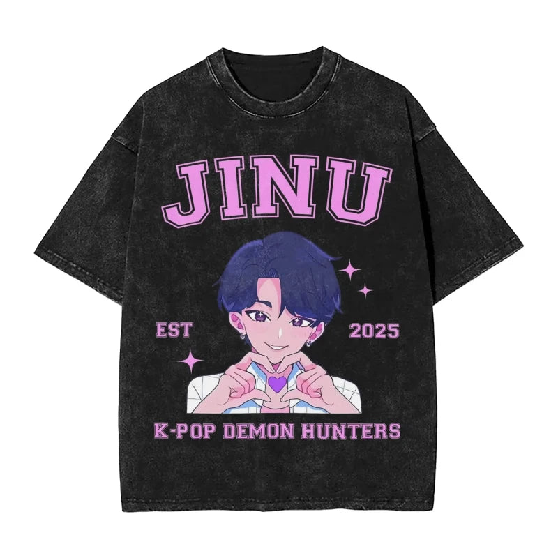 K-Pop Demon Hunters Washed T-Shirt Man Derpy Tiger Casual T-Shirts Summer Breathable Trendy Tee Shirt Design Plus Size Clothes