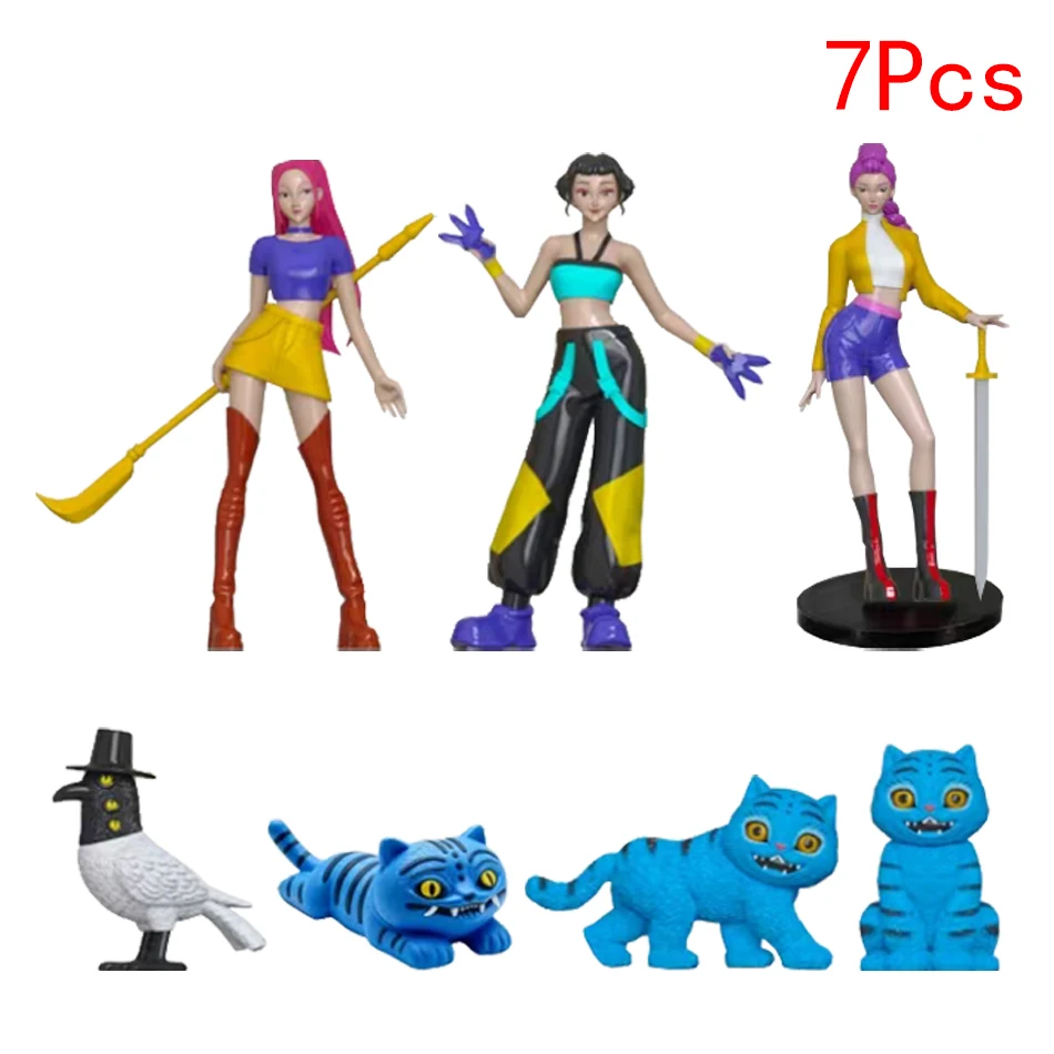Kpop Demon Hunters Figure Cartoon Kawaii Tiger Rumi Mira Zoey Action Figure PVC Desk Decoration Model Doll Toy Kids Gift