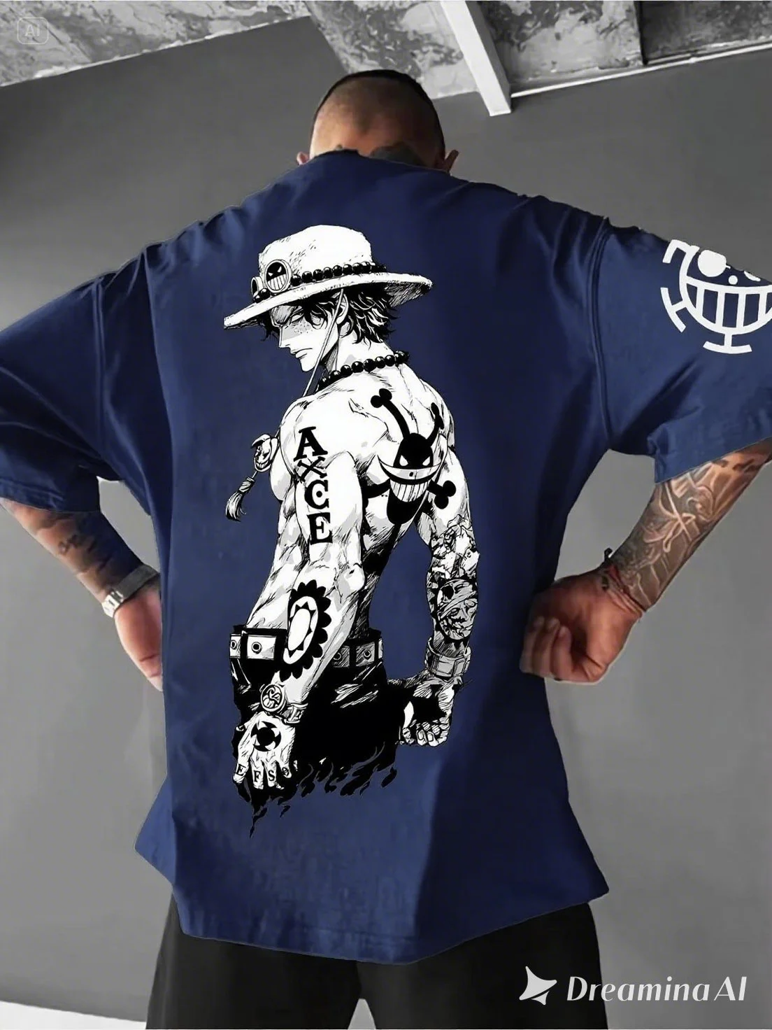 One Piece: Printed T-shirt Summer Short-sleeved Casual Tops Sailor Collar Casual Wear Streetwear T-shirt