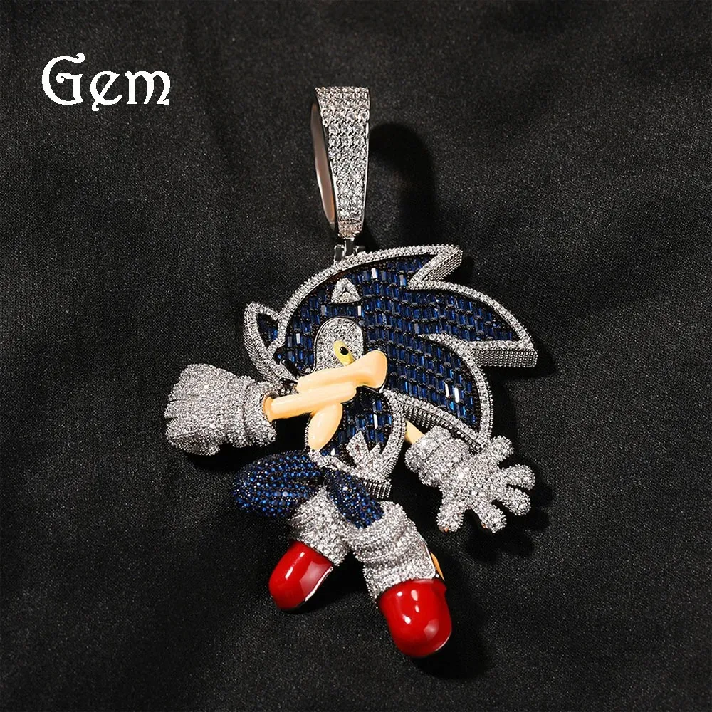New Anime Sonic The Hedgehog Stone Blue Cubic Zirconia Solid Back Necklace Pendant Anime Cartoon Necklace Fashion Charm Jewelry