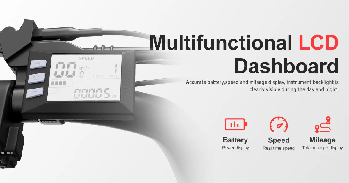 2. Fully Electric Mode: Twist the throttle in any increments of power you desire to power the motor of the bicycle, In his mode,it has 20-40miles battery range.